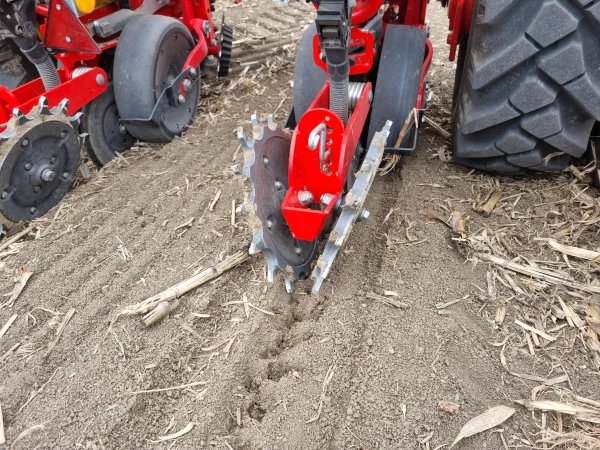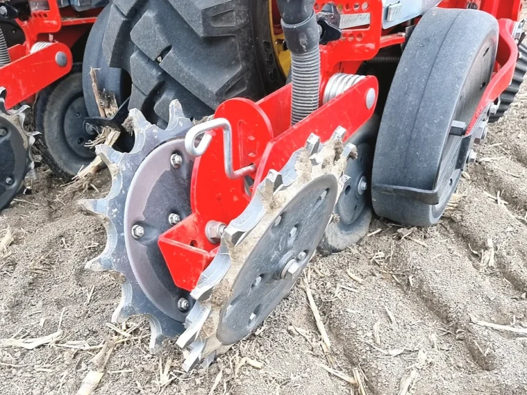 - Schließt die Saatfurche gut ab. Durch das Stahl-Druckrad wird für eine perfekte Arbeit weniger Anpresskraft benötigt als bei herkömmlichen Gummirädern.